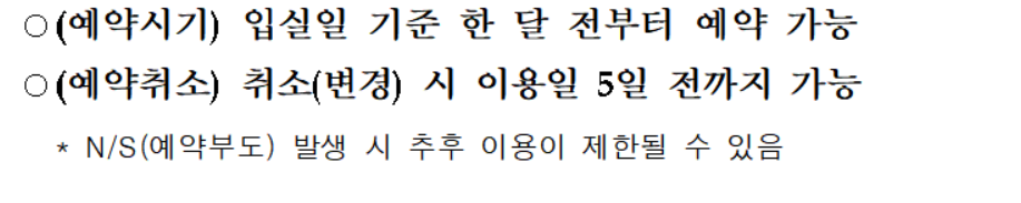 ● (예약시기) 입실일 기준 한 달 전부터 예약 가능