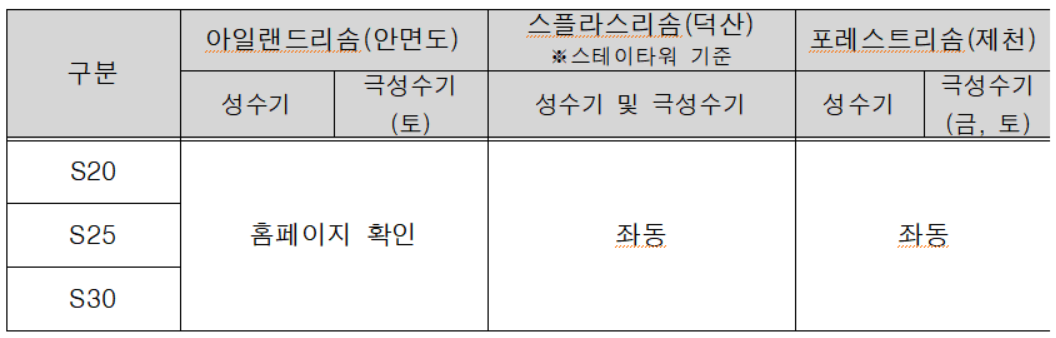 * 성수기(극성수기)의 경우는 예외(예약이 가능한 일자 별도 공지