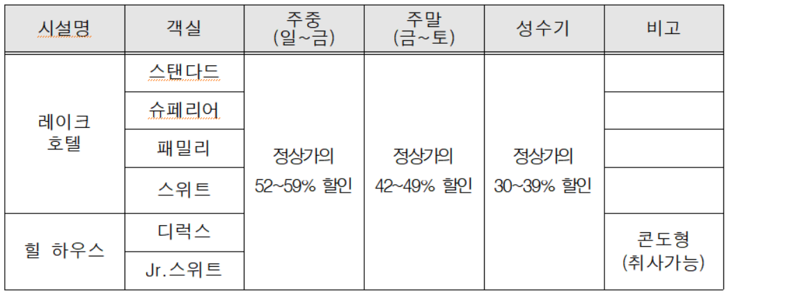 - (이용기간) 비수기 평일 주중. 주말