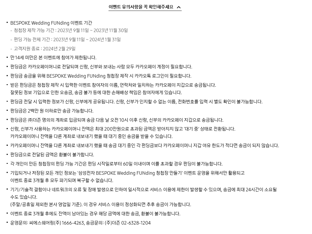 ※ BESPOKE Wedding FUNding 이벤트 기간